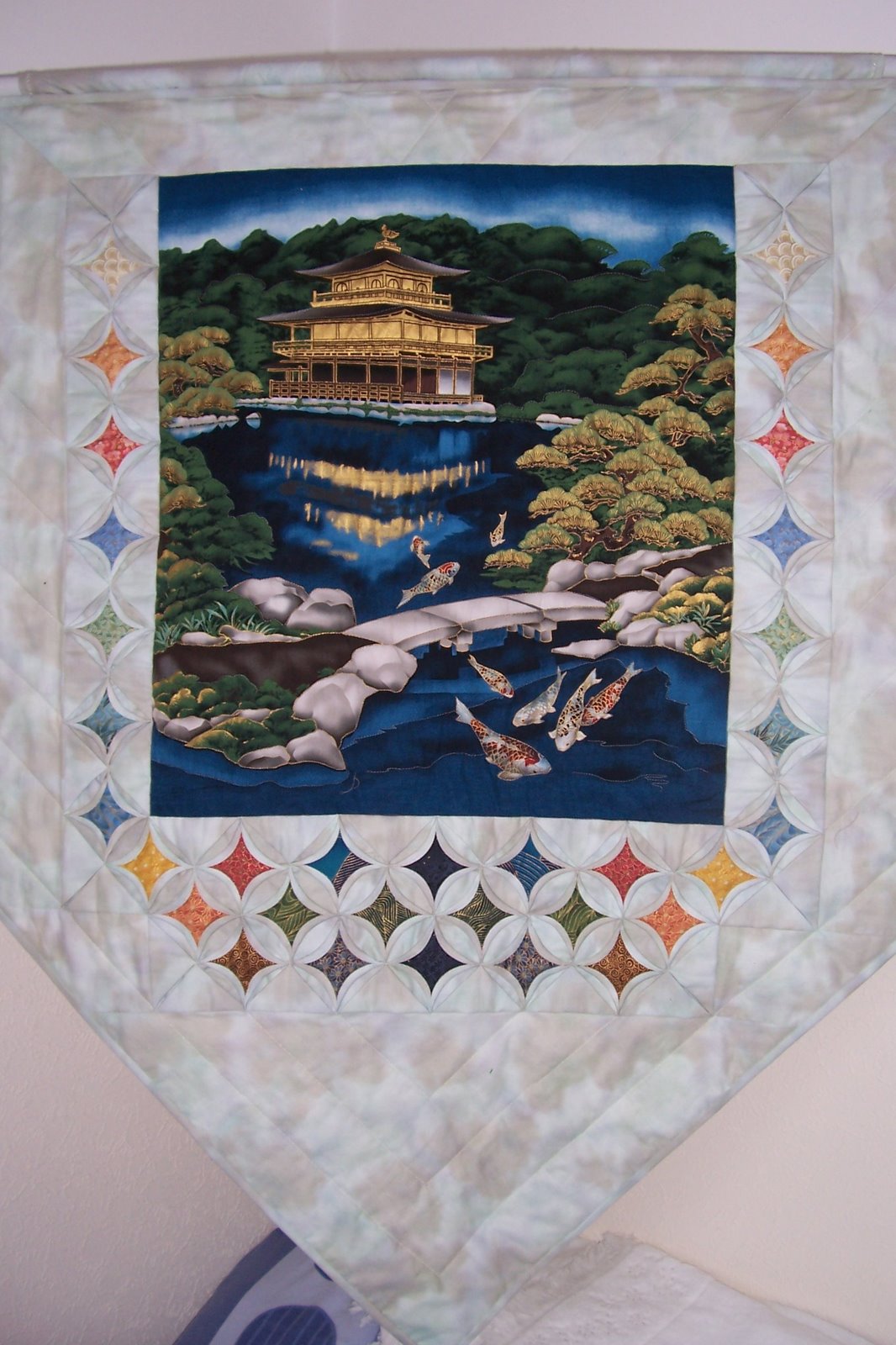 My favourite is this wall hanging (the photography is dire and you can’t see the detail, the entire hanging is quilted and the windows are metallic fabrics and look amazing).
