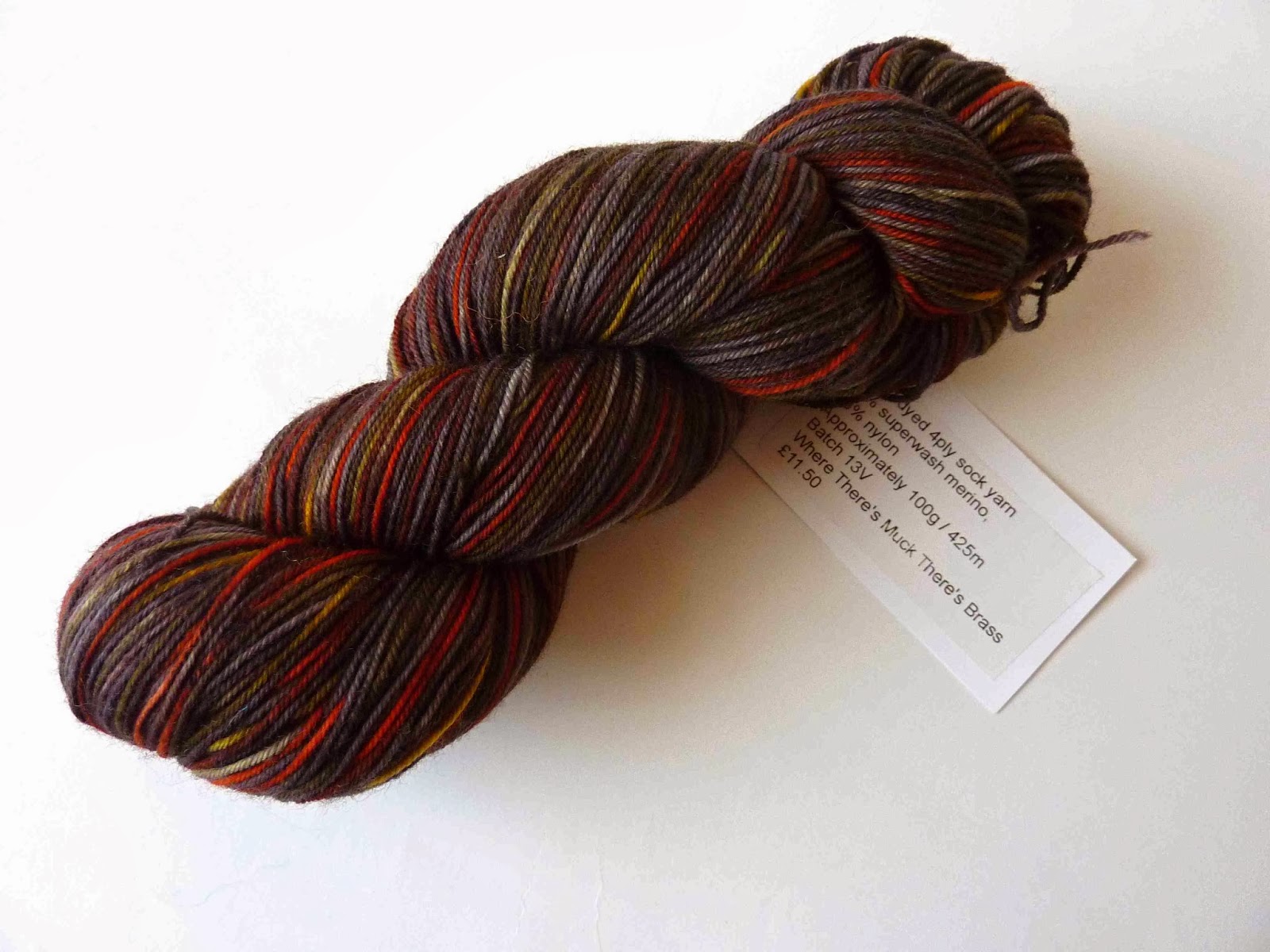 His favourite colours are black and burnt orange together. So when I saw the yarn on The Knitting Goddess stand at Yarndale, it just had to be bought. The colour name is just great too, “Where There’s Muck There’s Brass”.